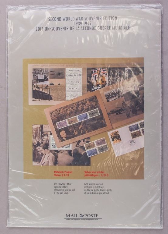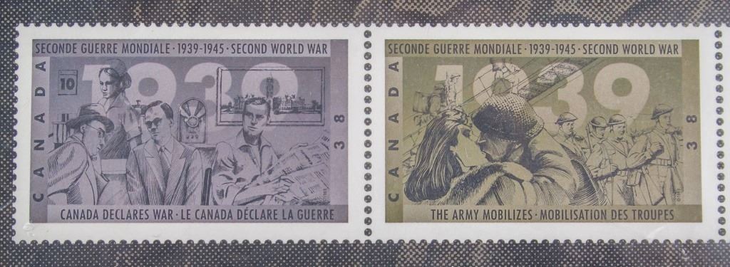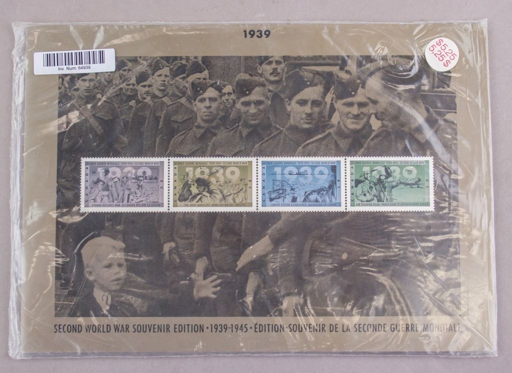 Canada Post set of stamps. Featuring WWII. Issued 1989. Titled "Reluctantly at War Again". 25 x 18 cm.