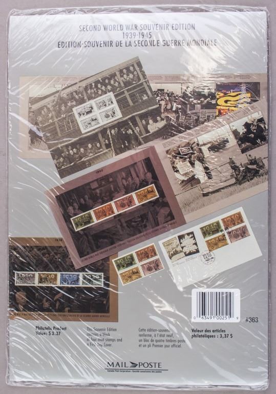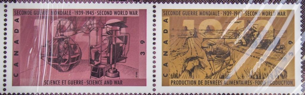 Canada Post set of stamps. Featuring WWII. Issued 1990. Titled "Canada Mobilizes Its Resources". 25 x 18 cm.