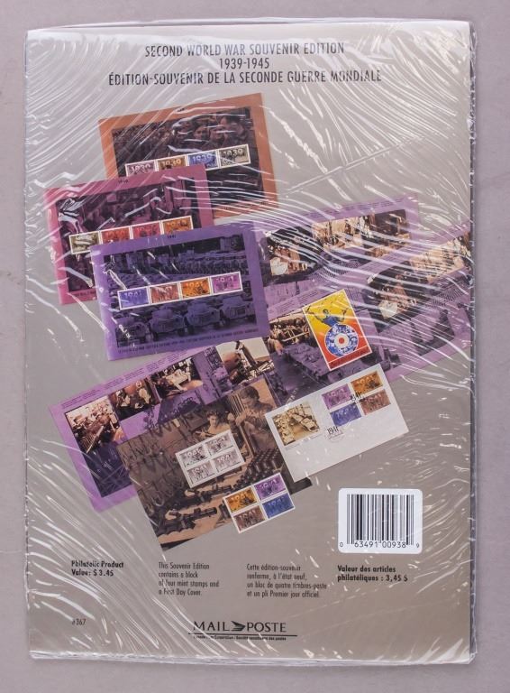 Canada Post set of stamps. Featuring WWII. Issued 1991. Titled "Total War". 25 x 18 cm.