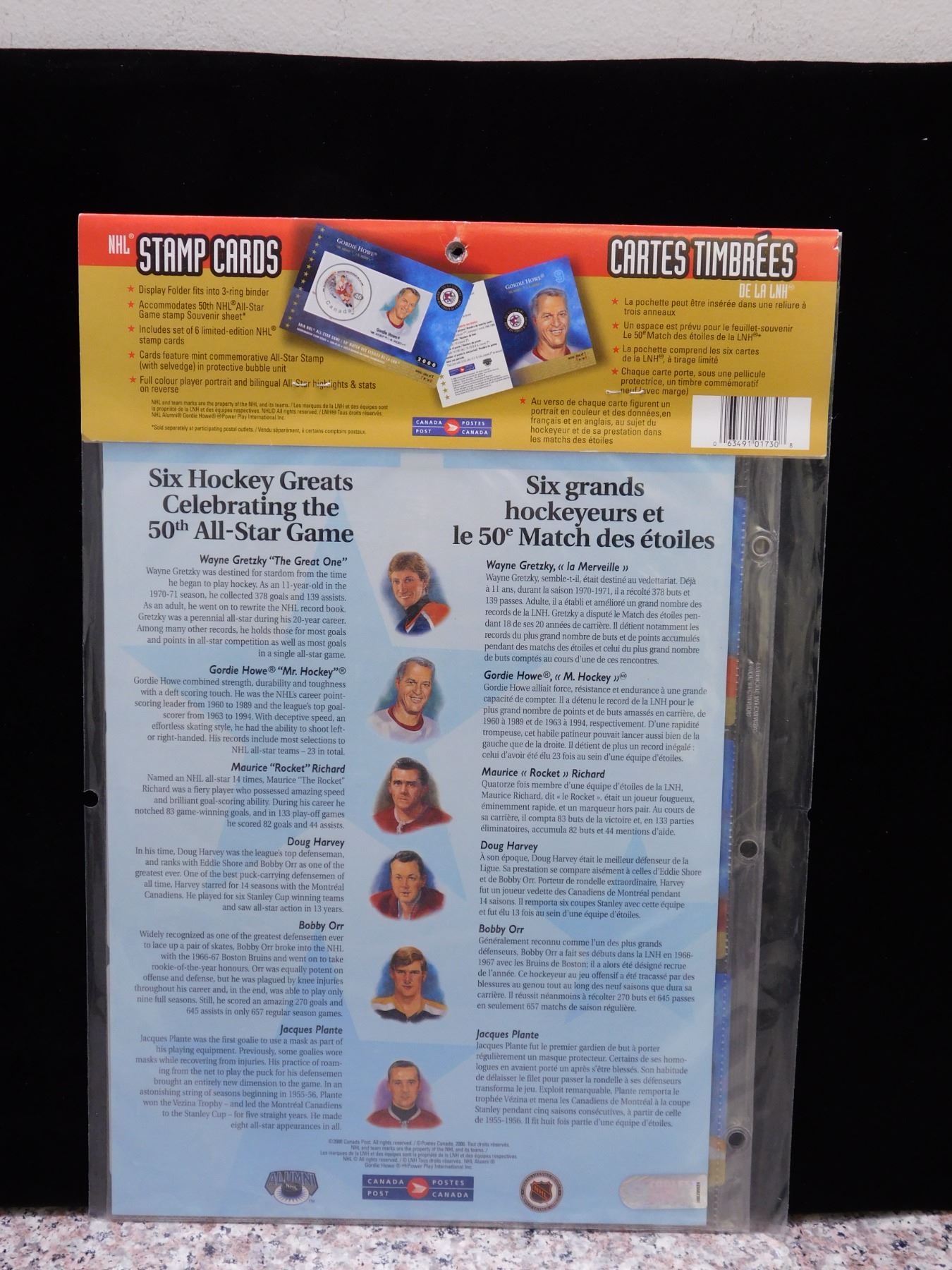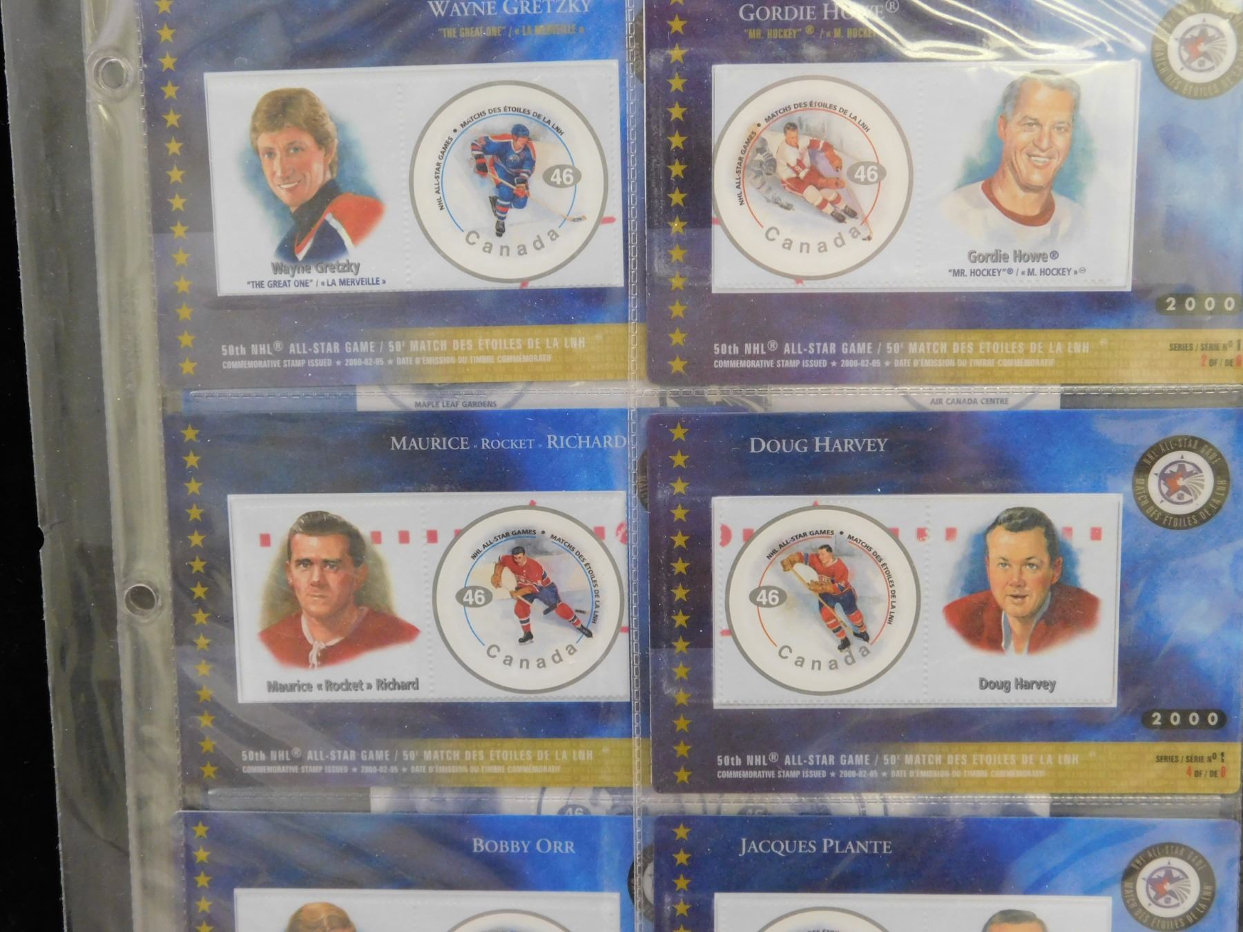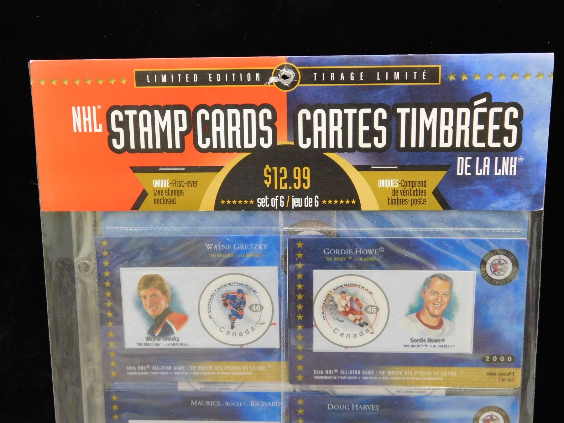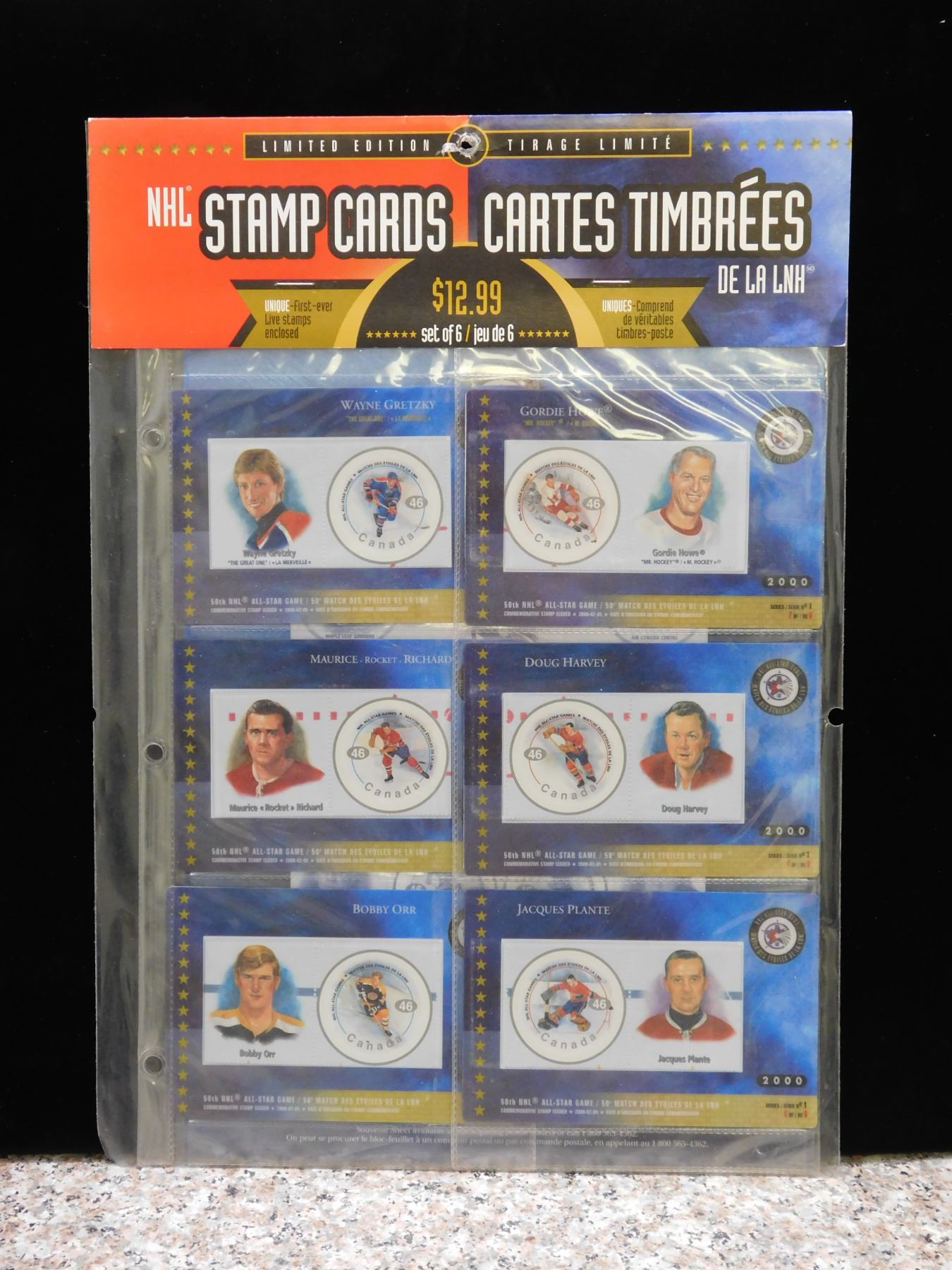 Canada Post Year 2000 Series 1 Stamp Cards, Gretzky, Howe, Richard, Harvey, Orr, & Plante
