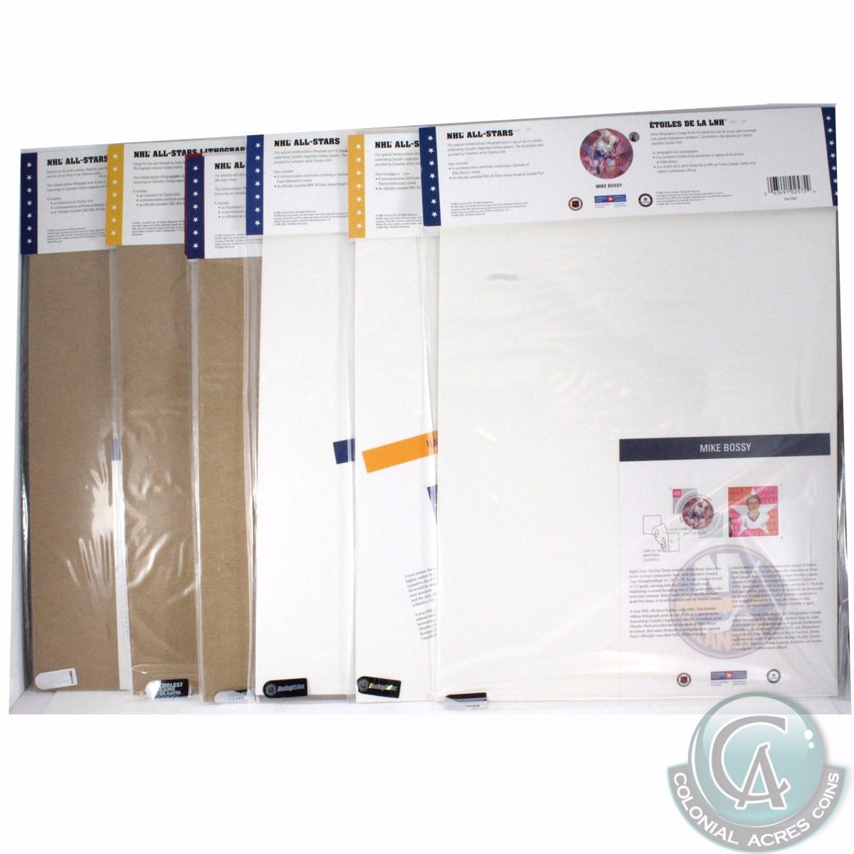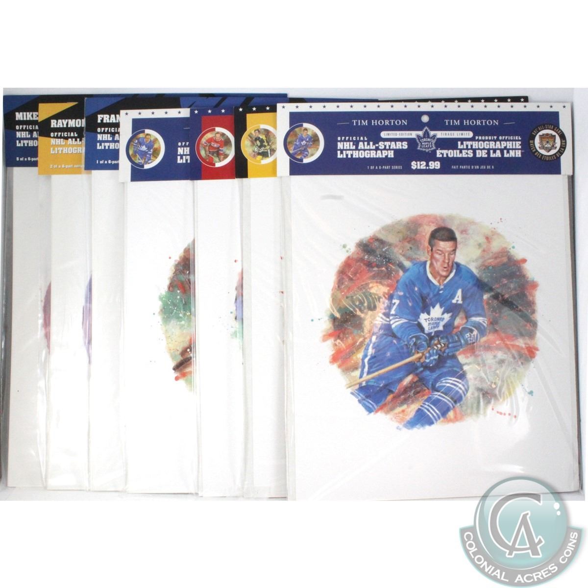 Canada Post issue: Lot of 7x 2002 & 2003 Limited Edition NHL All Stars Lithographs. This lot includes 2002 Tim Horton, 2002 Phil Esposito, 2002 Howie Morenz, 2002 Red Kelly, 2003 Frank Maholvich, 2003 Raymond Bourque and the 2003 Mike Bossy Lithograph (7pcs)