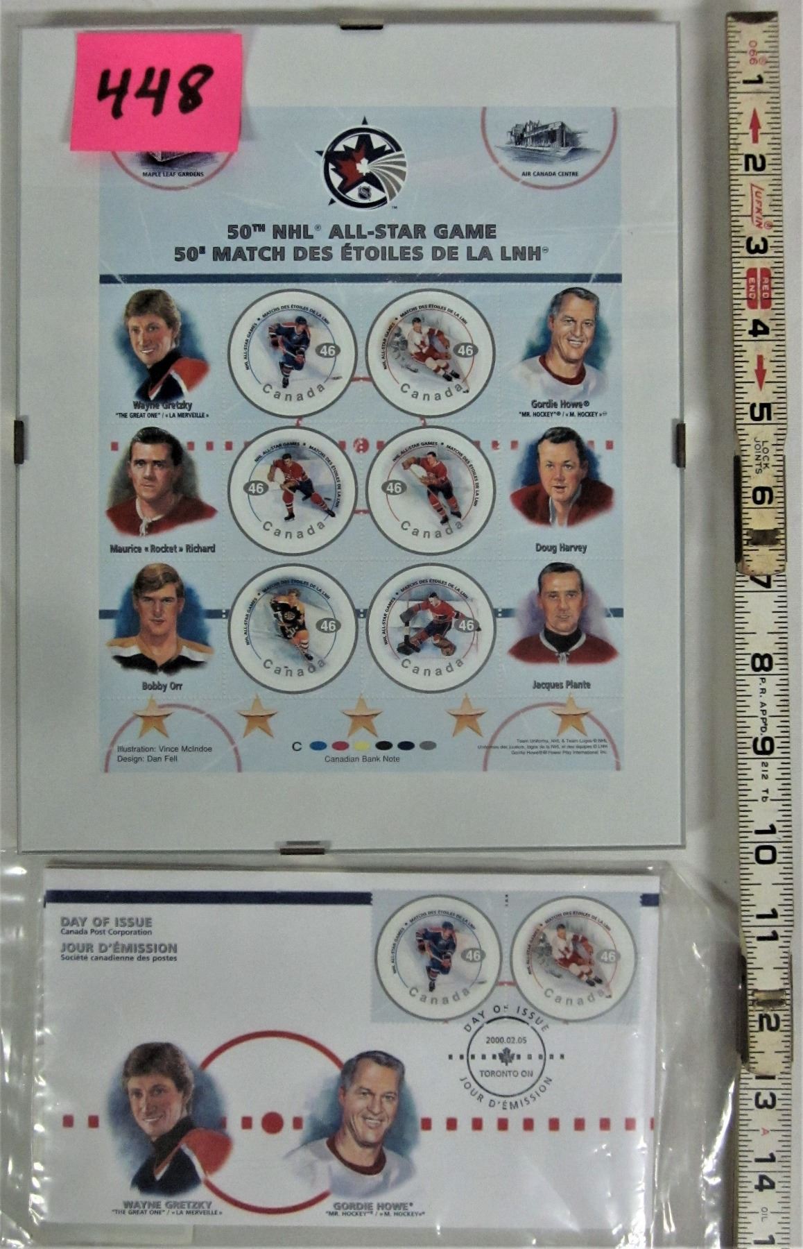 Canada Post ltd edition framed NHL 50th All Star game set set player stamps, 3 day of issue envelopes