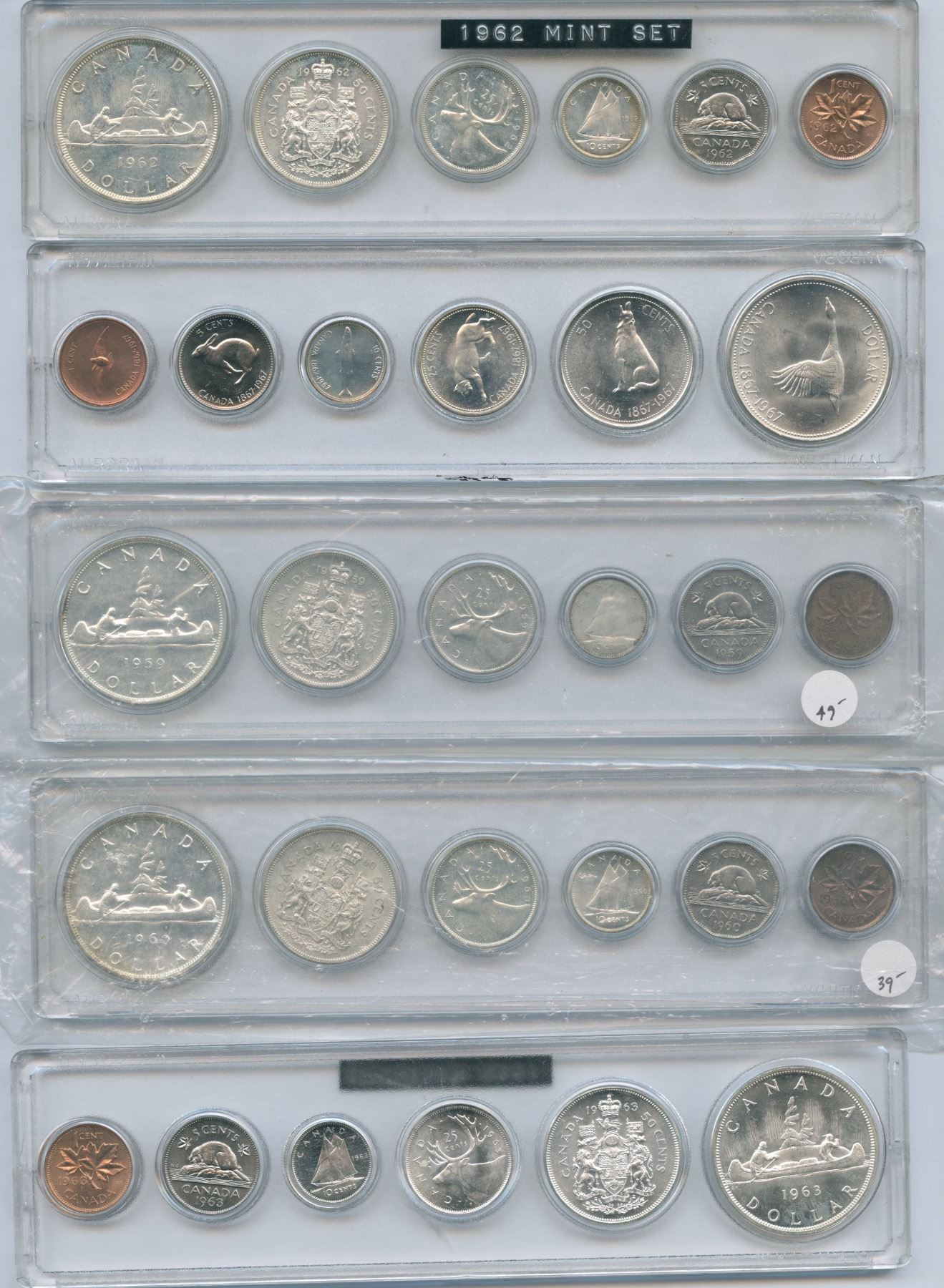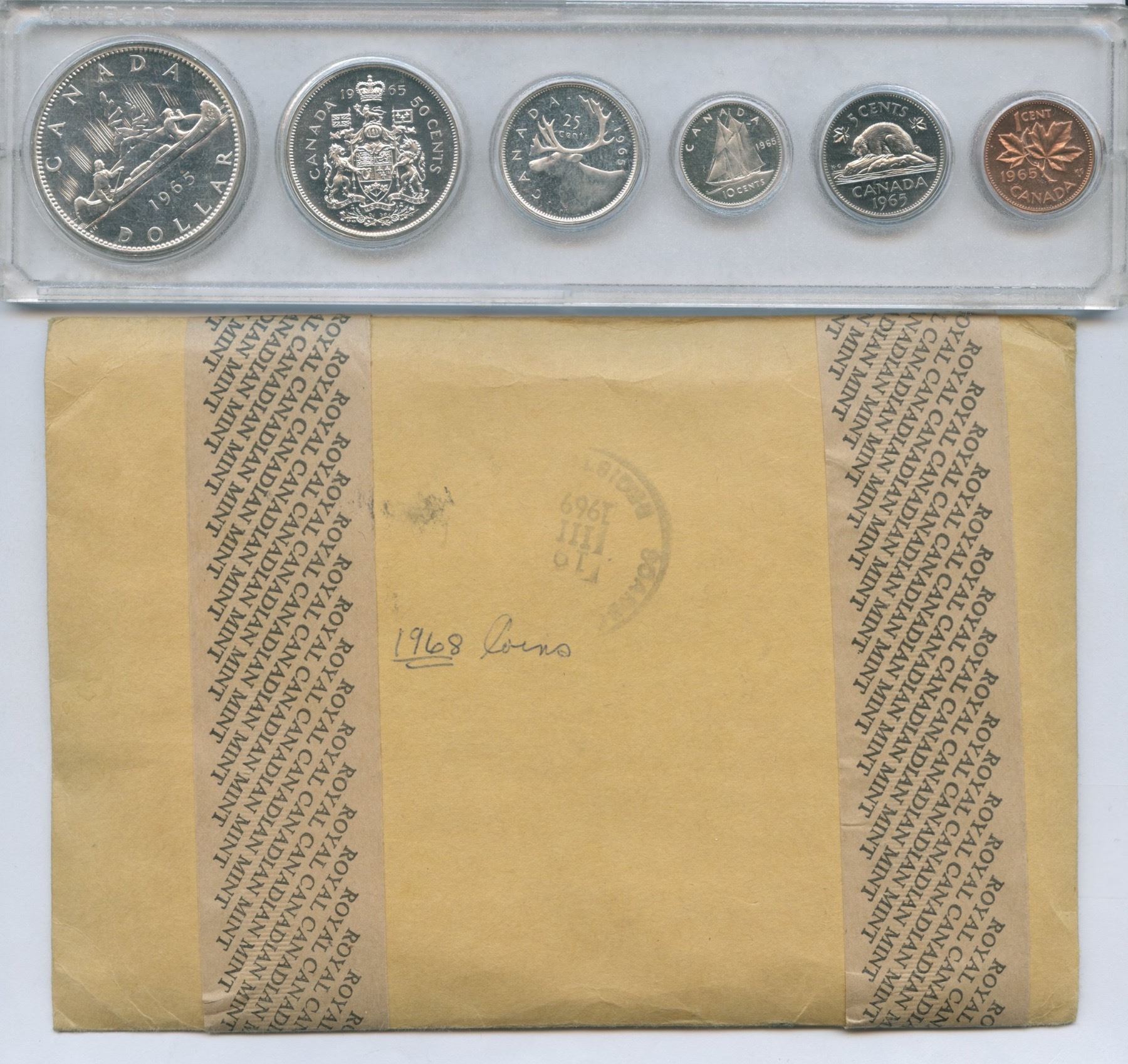 Canada 7 Proof Like sets in holders. 1959, 1960, 1962, 1963, 1965, 1967 and a 1968 set in original sealed envelope from the Royal Canadian Mint.
