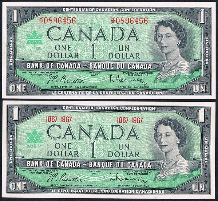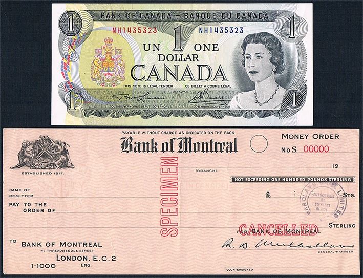 Canada, QEII, One Dollar, Accumulation, 1967-73 (P.74b (2), 85a); together with Bank of Montreal Money Order, graded as good extremely fine - almost uncirculated (3 notes, 4 items)