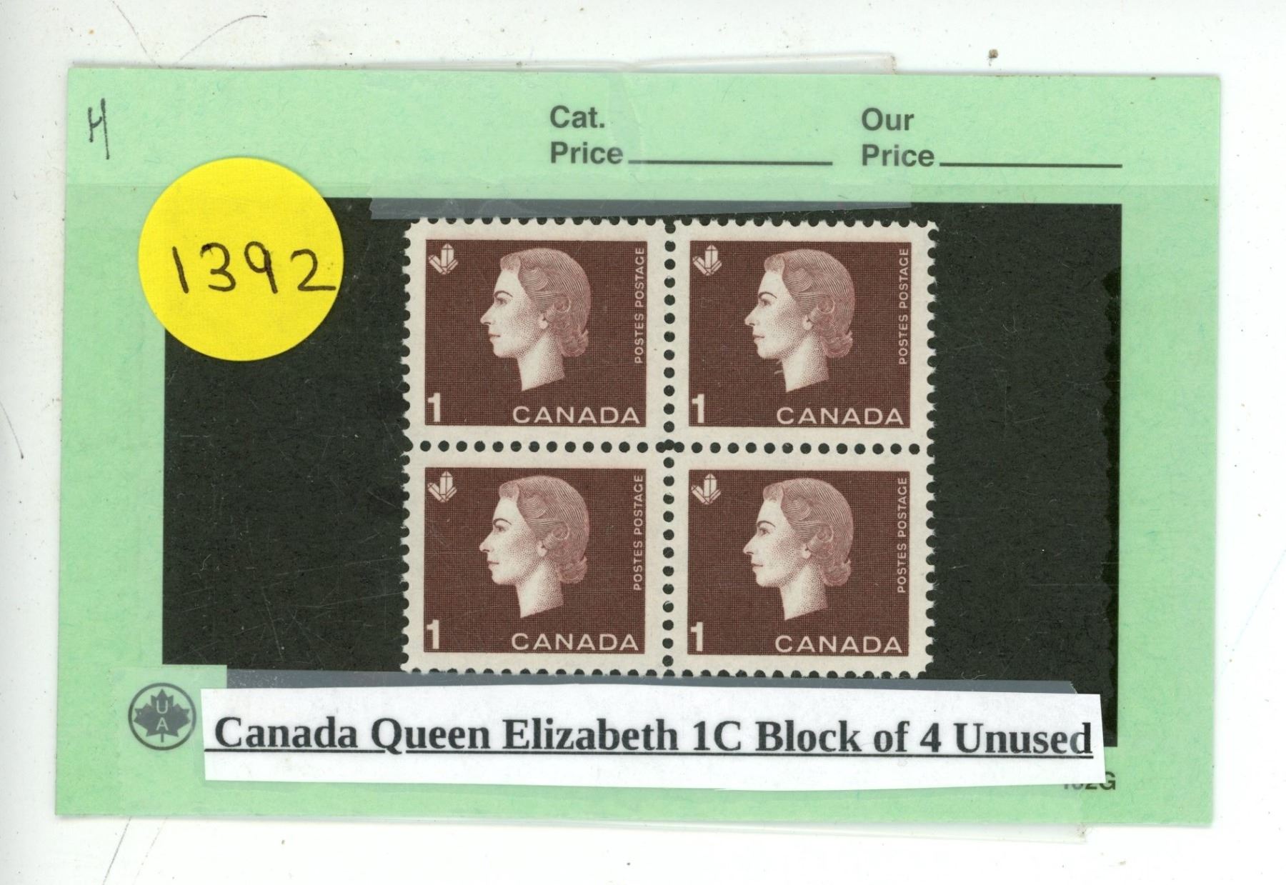 Canada Queen Elizabeth 1C Block of 4 Unused.