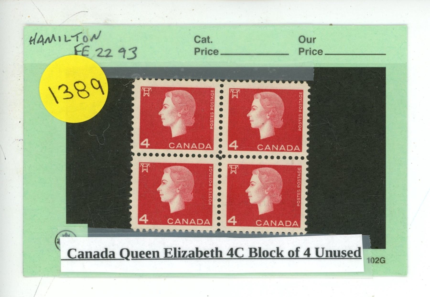 Canada Queen Elizabeth 4C Block of 4 Unused.