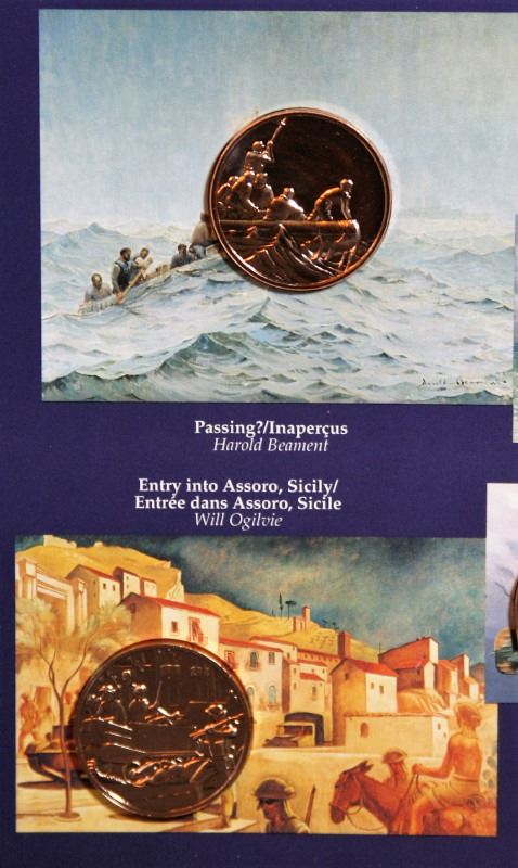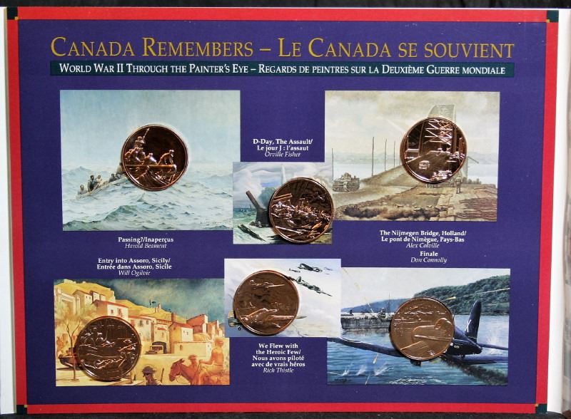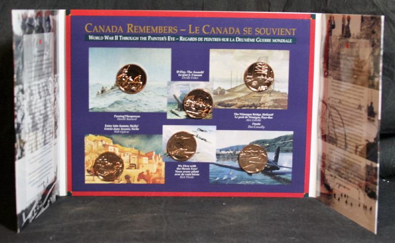 Canada Remembers - World War II Through The Painters Eye - 6 Medallion Collection In Presentation Folder - Each medallion highlights a portion of a painting by Canadian Artists - Produced By The Royal Canadian Mint