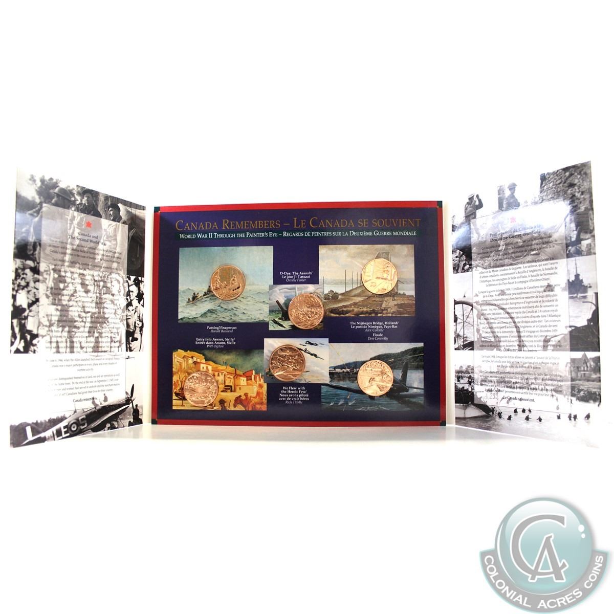 "Canada Remembers - World War II Through the Painter's Eye" 6-coin Medallion Commemorative Set in Illustrated Info-graphic Folder.