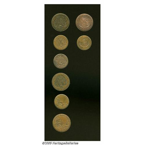 <B>Selection of Bank Tokens, </B></I>Quebec-Bank of Lower Canada: Half Penny 1837 BR-522 and Penny 1837 BR-521, Bank of Montreal: Half Penny 1844 BR-527 and Penny 1842 BR-526, Quebec Bank Token Half Penny 1852 BR-529 and Penny 1852 BR-528, and Upper Canada Half Penny 1852 BR-720 and Penny 1850 BR-719. Grades range from nice VF to AU. <B>Sold as is, no return lot.</B></I>