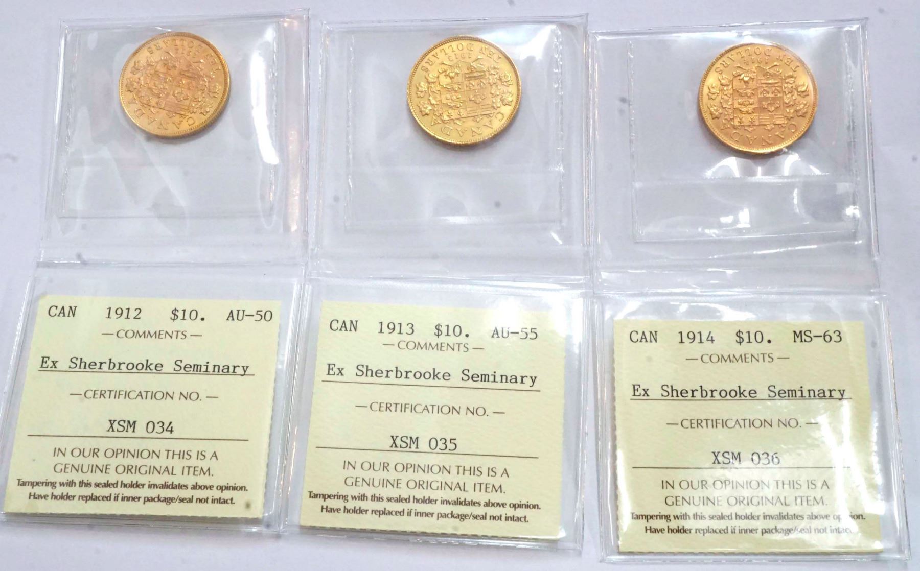 1912 AU-50; 1913 MS-62; 1914 MS-63. Catalogue value $3250. Gold value $2550