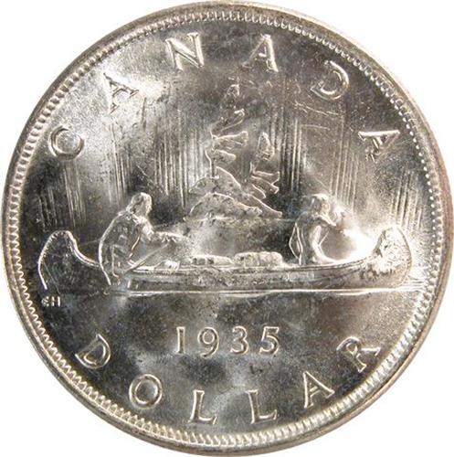 Canada Silver Dollar 1935 ICCS MS-64. Pale golden toning