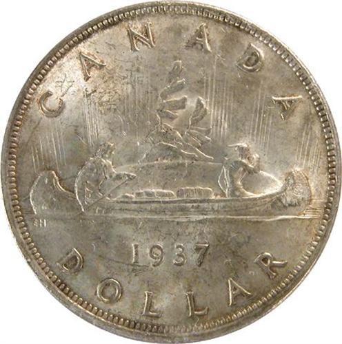 Canada Silver Dollar 1937 ICCS MS-63. Light golden toning