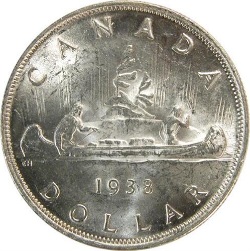 Canada Silver Dollar 1938 AU-Uncirculated. Pale toning