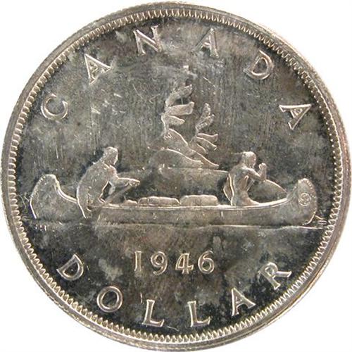 Canada Silver Dollar 1946 (Short Waterlines) ICCS MS-60. Great lustre and very pale toning