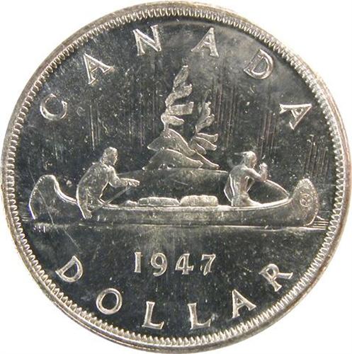 Canada Silver Dollar 1947 Blunt 7 Doubled HP ICCS MS-63. This is a fully struck piece and near untoned piece