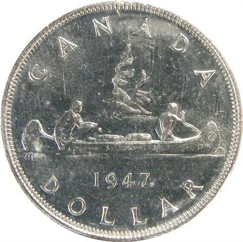 Canada Silver Dollar 1947 Maple Leaf Doubled HP ICCS MS-62. A near untoned example
