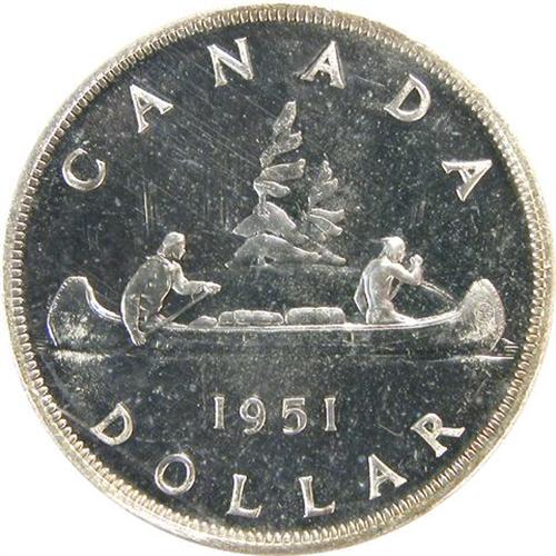 Canada Silver Dollar 1951 ICCS PL-65. A superbly lustrous and virtually untoned piece