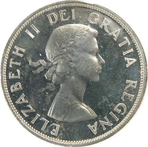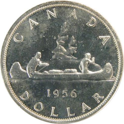 Canada Silver Dollar 1956 ICCS PL-66 Heavy Cameo. This is a superbly lustrous and near flawless very pale golden toned piece. It is tied as the highest Heavy Cameo graded by ICCS, with five Ultra Heavy Cameos higher