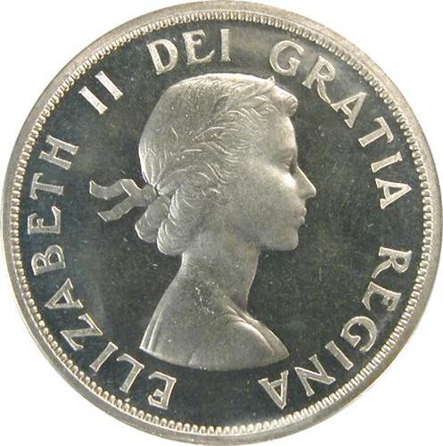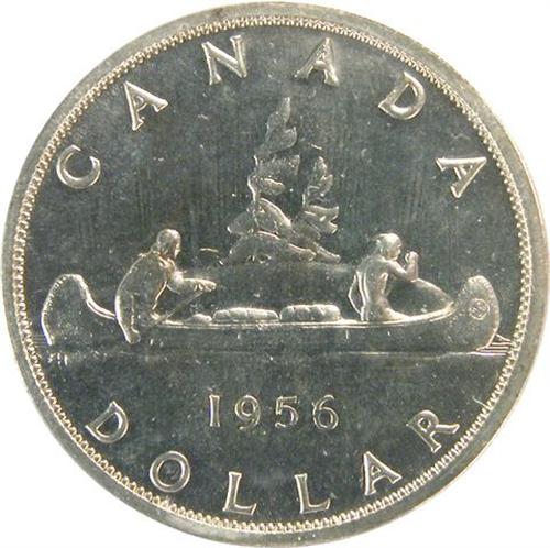 Canada Silver Dollar 1956 ICCS PL-66 Heavy Cameo. This is a superbly lustrous and near flawless very pale golden toned piece. It is tied as the highest Heavy Cameo graded by ICCS, with five Ultra Heavy Cameos higher