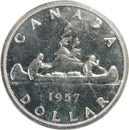 Canada Silver Dollar 1957 ICCS PL-64 Cameo. Untoned