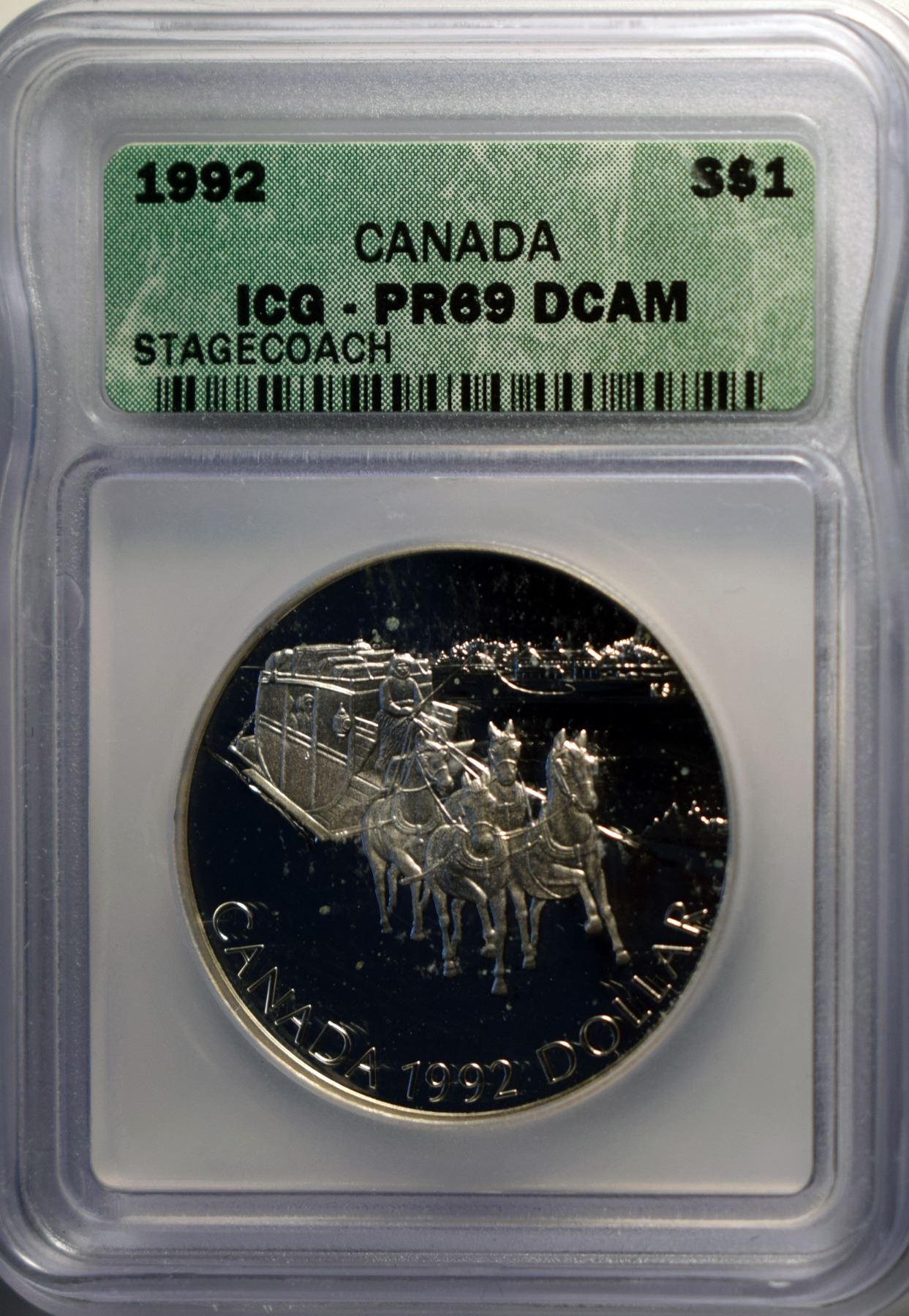 Canada Silver Dollar 1992 Stagecoach Certified by ICG PR69 UHC