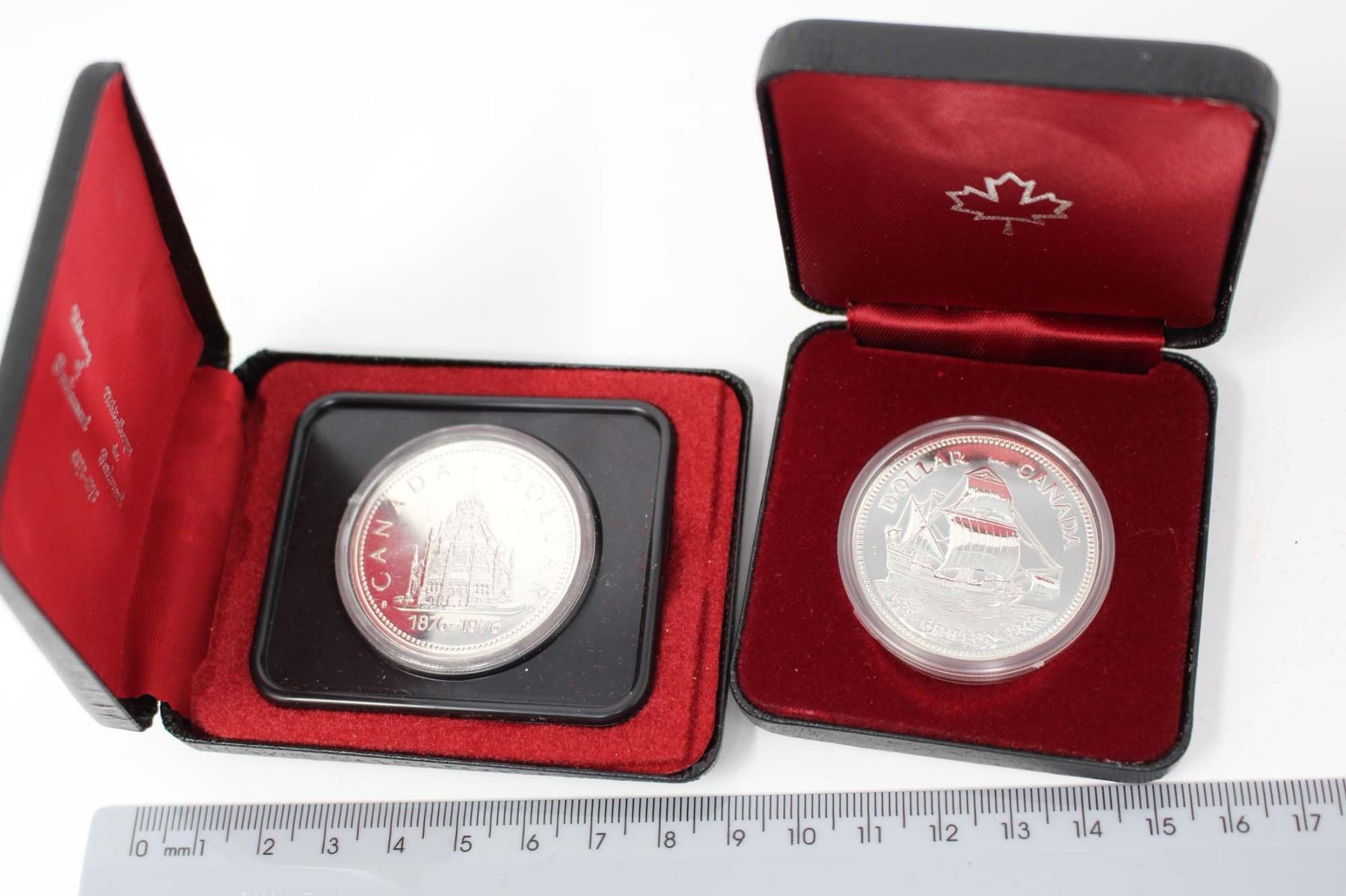 Canada Silver Dollars (2): 1876-1976 Liberty of Parliment& 1679-1979 Griffon
