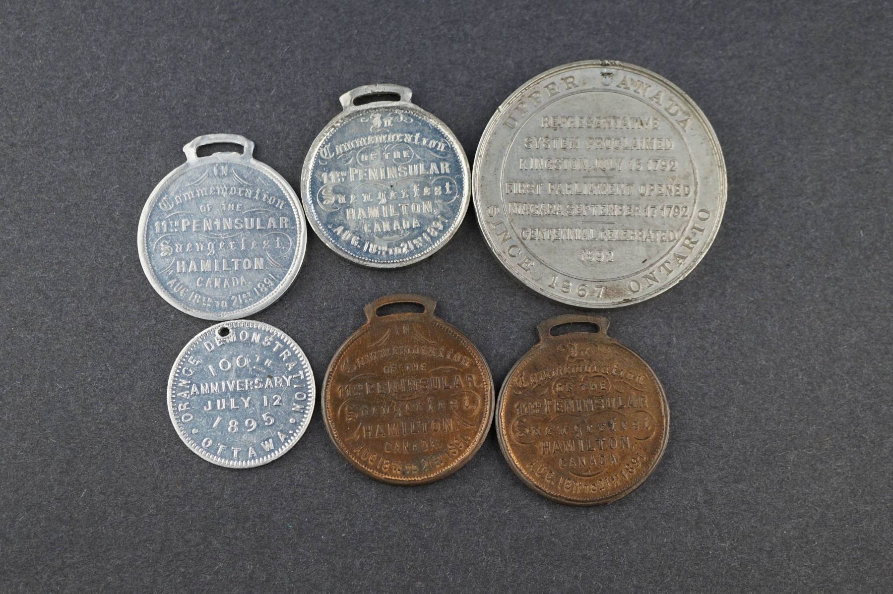 6 Pcs. Lr-1635b AE & WM-34 mm. UNC, LC-1635c AE-34, UNC, Lr-1635d, 1895 Orange Ottawa, AL-28 pierced & Lr-1635i, WM-49, 39.1 grs. AU w/o mount. Should be viewed
