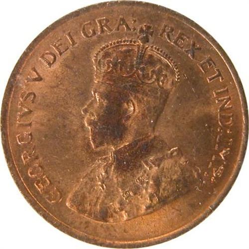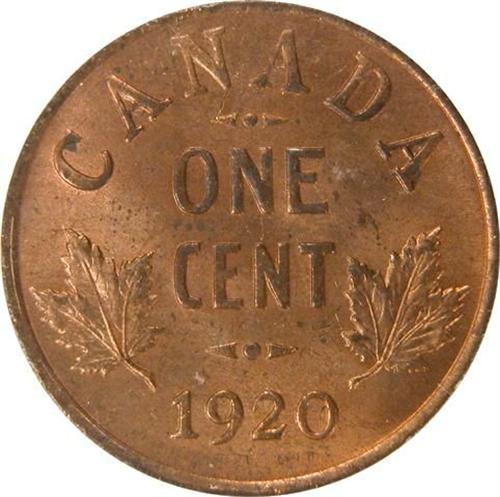 Canada Small Cent 1920 ICCS MS-65 Red. Strongly lustrous and about 80% red. It is tied as the highest graded by ICCS