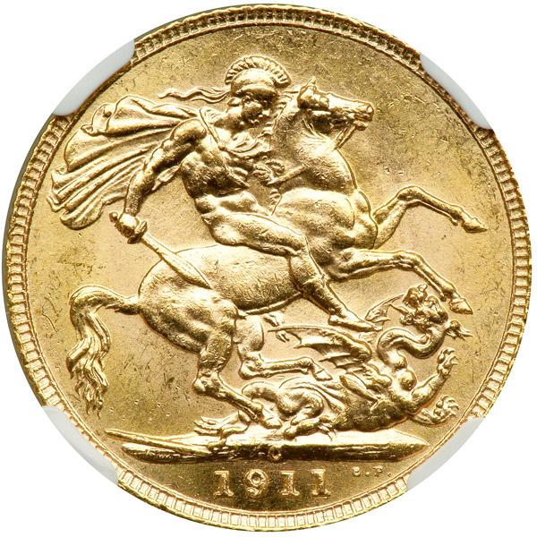 Canada. Sovereign, 1911-C. Fr-2; KM-20. Weight 0.2355 ounce. George V. NGC graded MS-62.