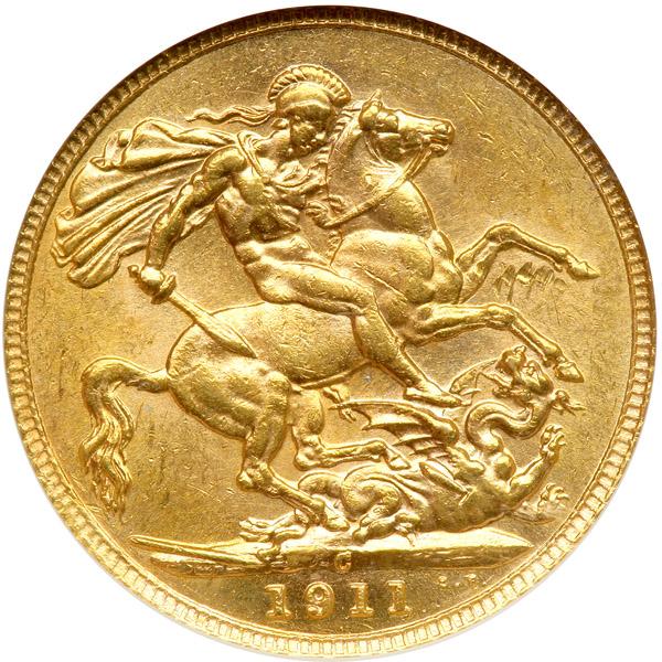 Canada. Sovereign, 1911-C. Fr-2; KM-20. Weight 0.2355 ounce. George V. NGC graded MS-62.