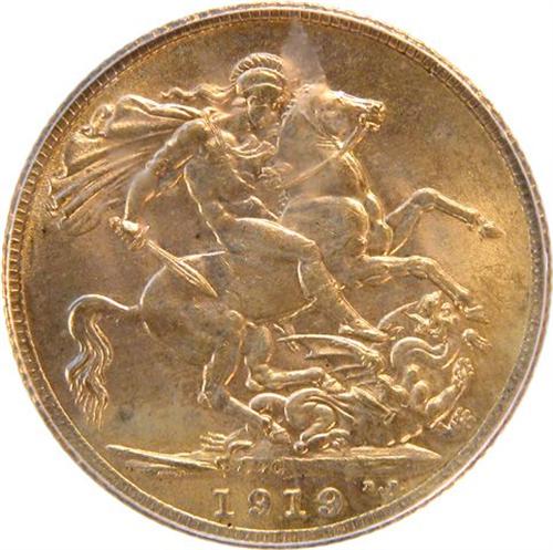 Canada Sovereign 1919C PCGS MS-63. Strongly lustrous