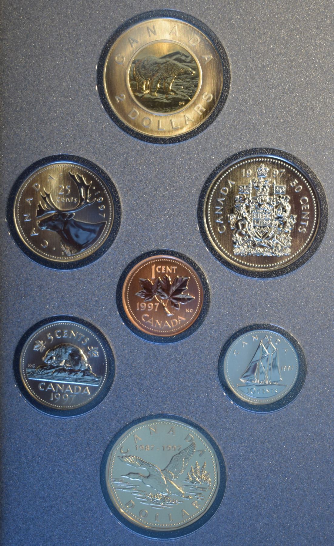 Canada, Specimen Set 1997 "Flying Loon / Bearl" in Original Display 7 coins