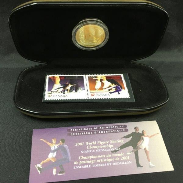 World Figure Skating Championships - Pairs Stamp & 24k Gold Plated Medallion