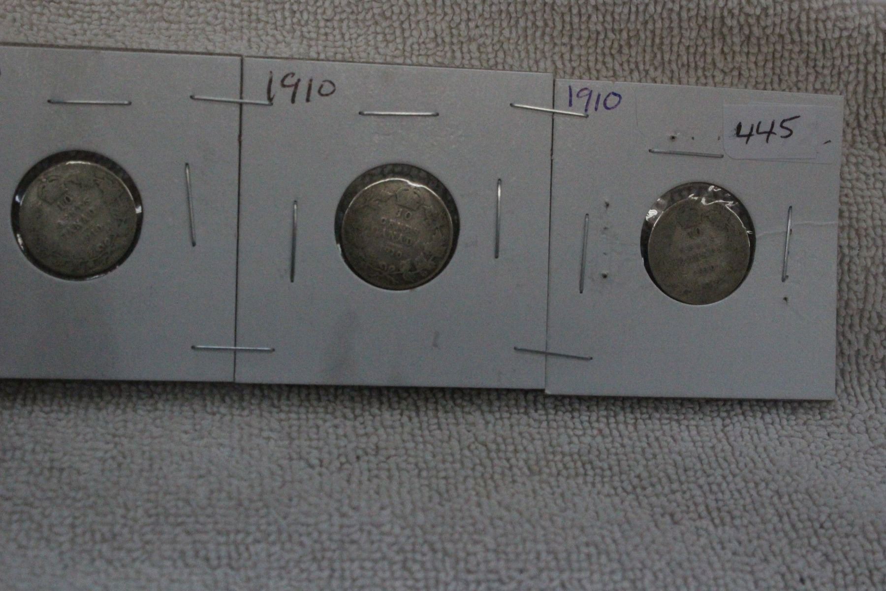 Canada Ten Cent Coins - 1910 (3) - Silver