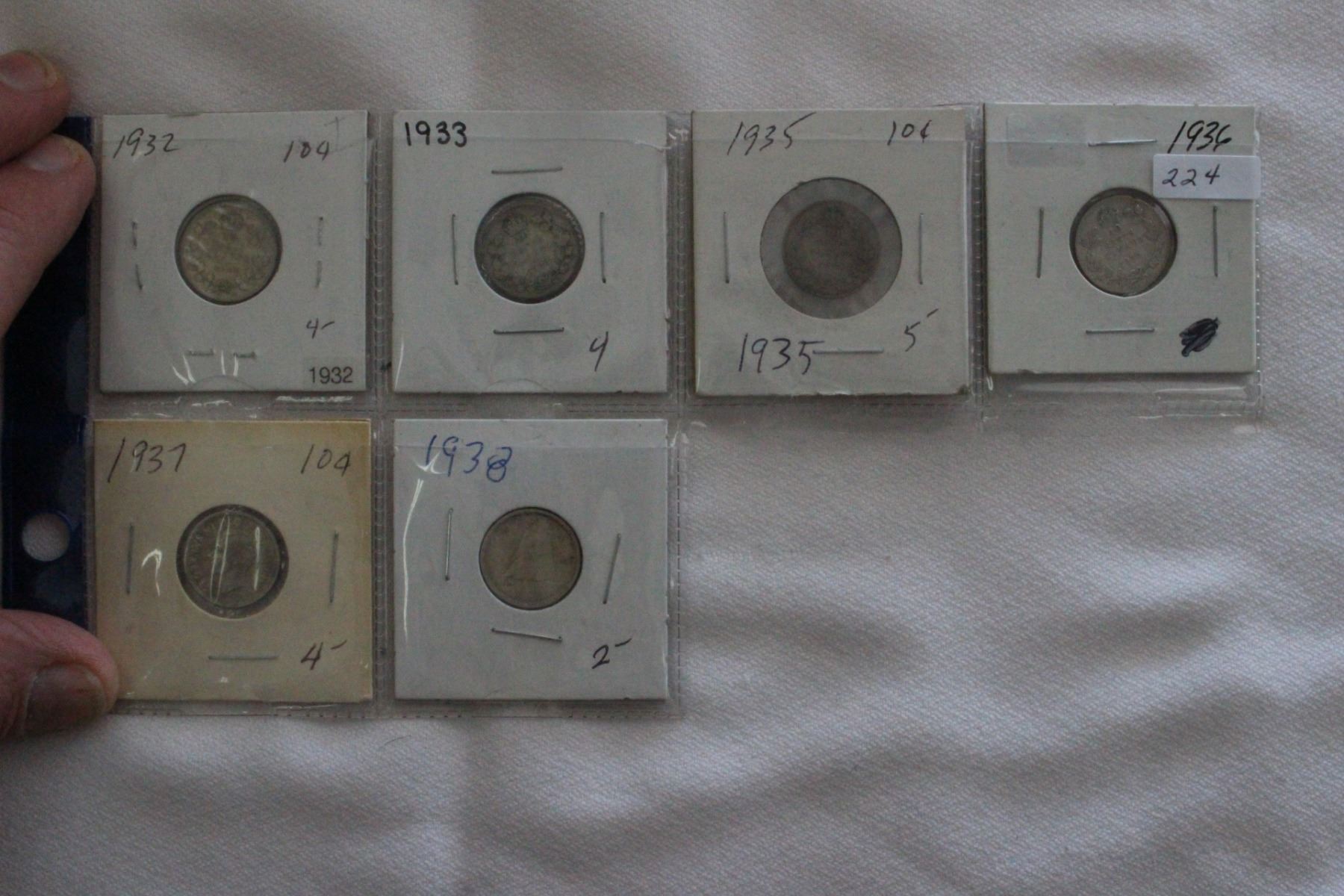 1932, 1933, 1935, 1936, 1937, 1938; Silver