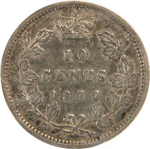 Canada Ten Cents 1870 Narrow 0 ICCS VF-20. Light toning