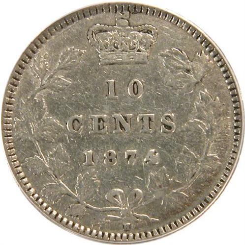 Canada Ten Cents 1874H PCGS VF-35. Pale toning