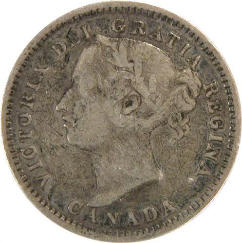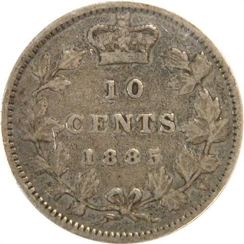 Canada Ten Cents 1885 Obverse 5 ICCS VG-10. A rather nice, lightly toned example of this scarce variety
