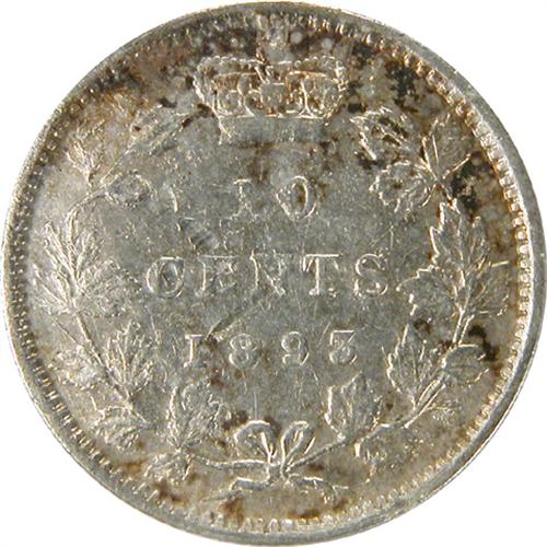 Canada Ten Cents 1893 FT 3, ICCS VF-20