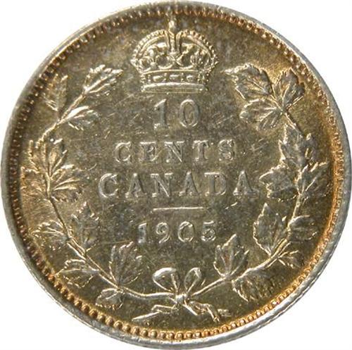 Canada Ten Cents 1905 ICCS EF-40. Light golden toning