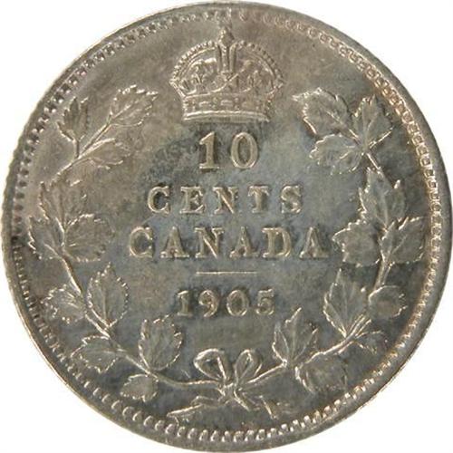 Canada Ten Cents 1905 ICCS EF-40. Pale golden toning