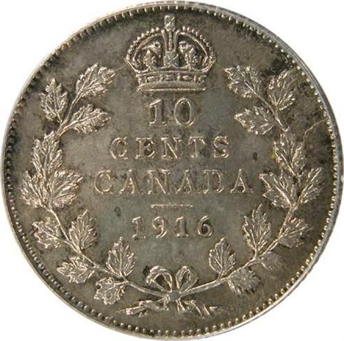 Canada Ten Cents 1916 PCGS MS-64. This is a fully struck and strongly lustrous piece with light golden toning