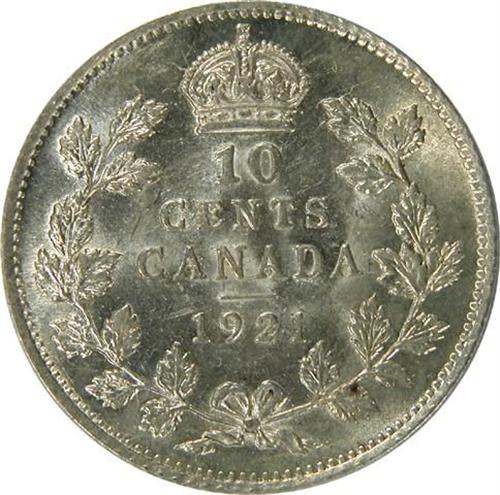 Canada Ten Cents 1921, Choice AU-Uncirculated. A very sharp and near fully lustrous untoned piece