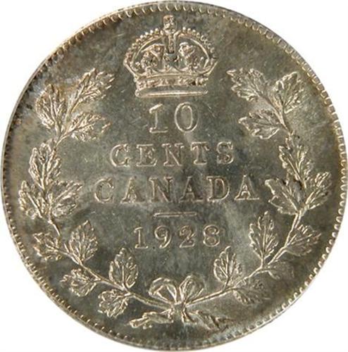 Canada Ten Cents 1928 PCGS MS-61. Light golden toning