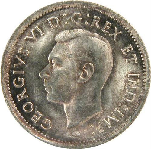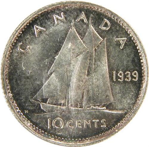 Canada Ten Cents 1939 Repunched 193 ICCS MS-64. Very attractive pale golden mauve toning