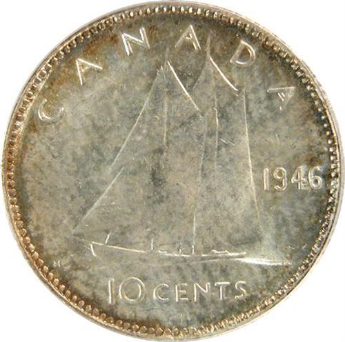 Canada Ten Cents 1946 PCGS MS-64. Light toning