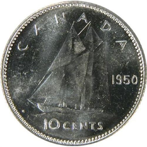 Canada Ten Cents 1950 ICCS MS-65. Untoned