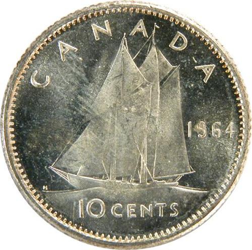 Canada Ten Cents 1964 ICCS MS-65 Ultra Heavy Cameo. Pale golden toning. There are only three PL-66 Ultra Heavy Cameos graded higher by ICCS