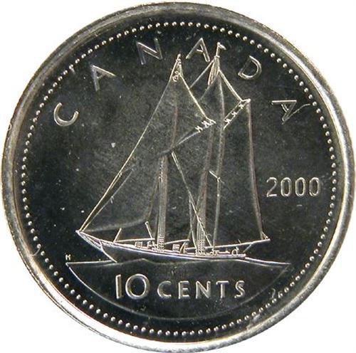 Canada Ten Cents 2000P ICCS MS-64. This is a fully struck piece with great lustre