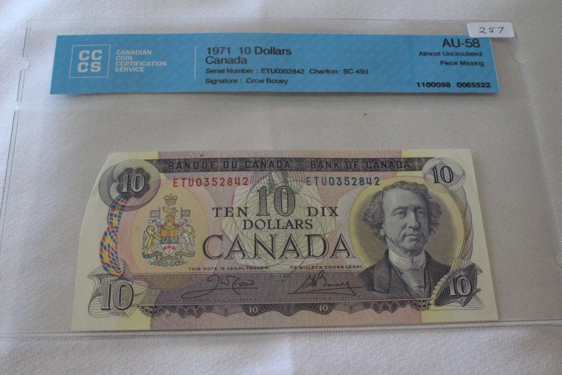 1971; Crow/Bouey; ETU0352842; Piece Missing; Graded 'AU 58' by Canadian Coin Certification Service